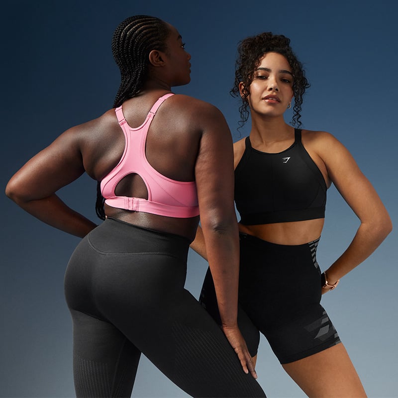 Wondering what sports bra size you are? Head to our recently updated sports bra size chart. We'll take you through the steps on how you can covert your regular bra size (ie. 32DD), to find the best high support sports bra size for you at Gymshark.