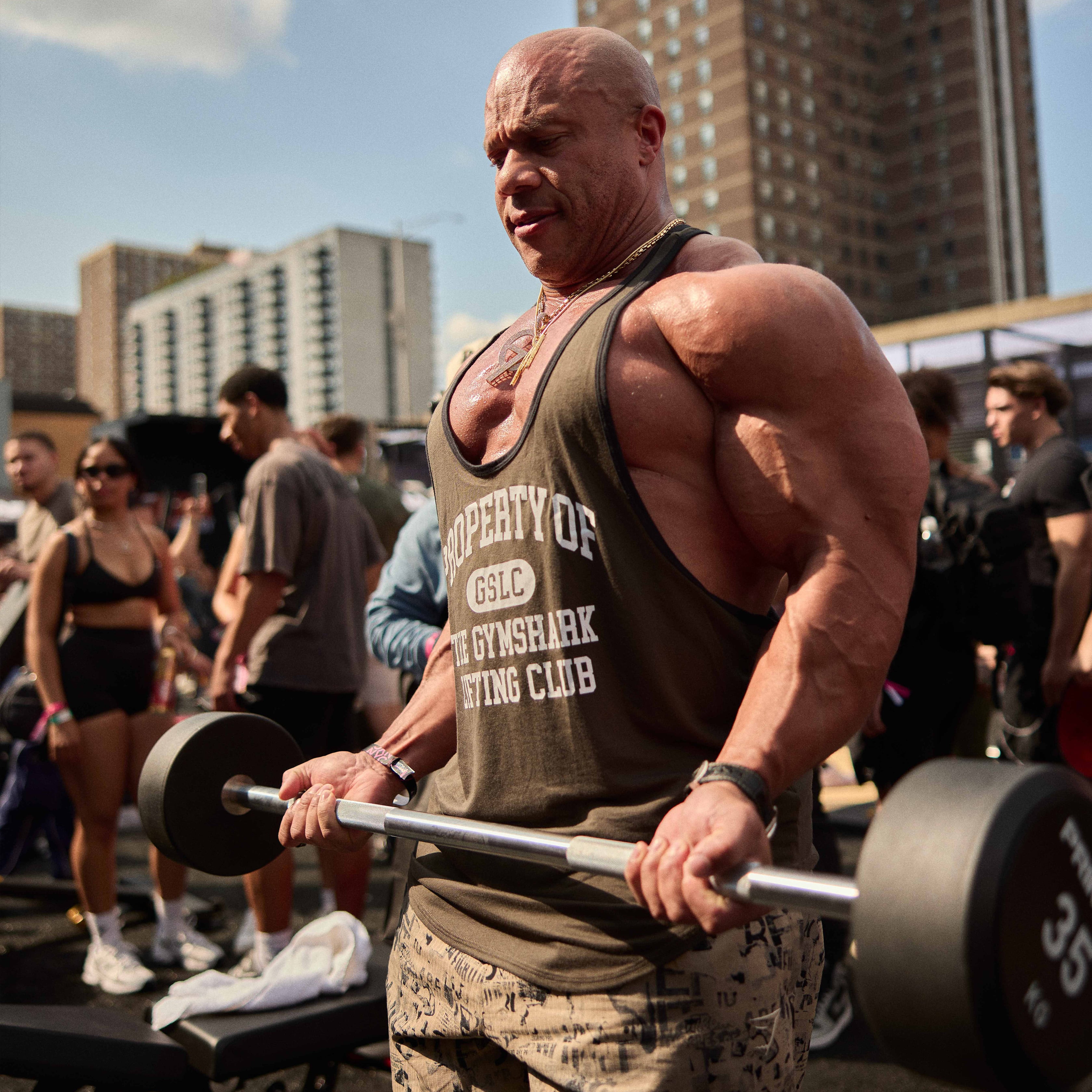 Once you’ve picked up the bar, allow it to hang with your arms straight, and elbows by your side – maintaining a stable stance and soft knees.
