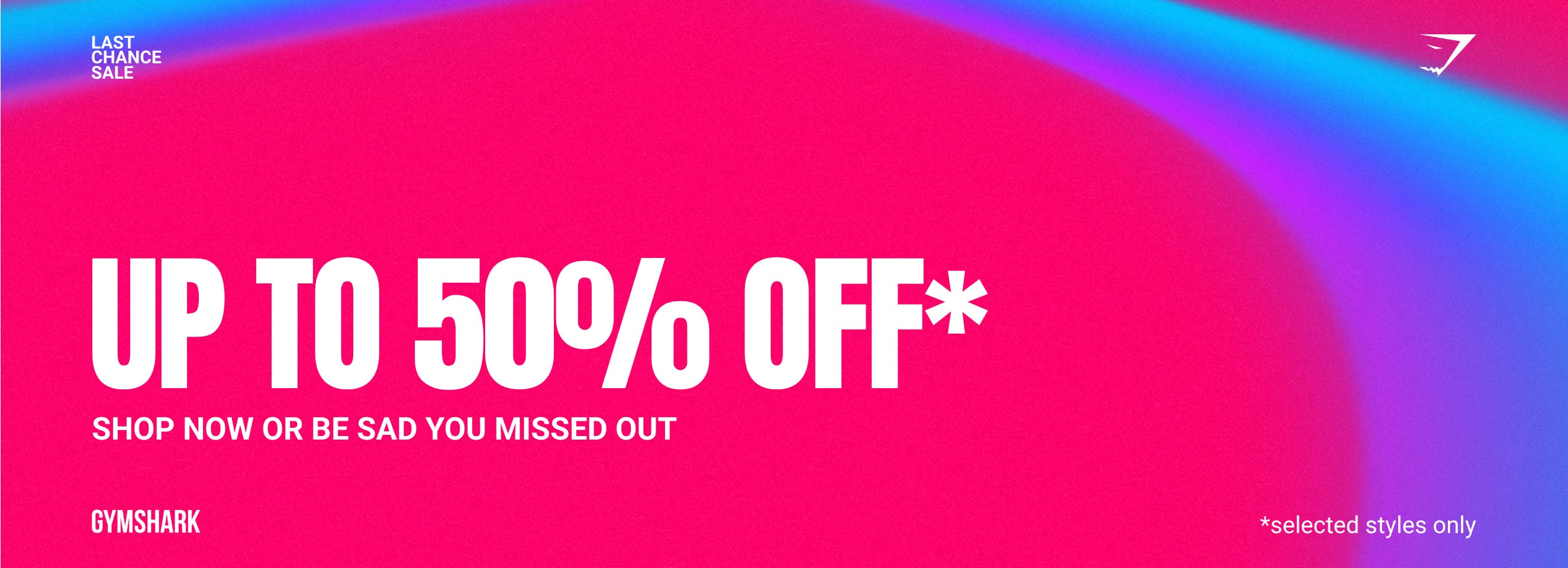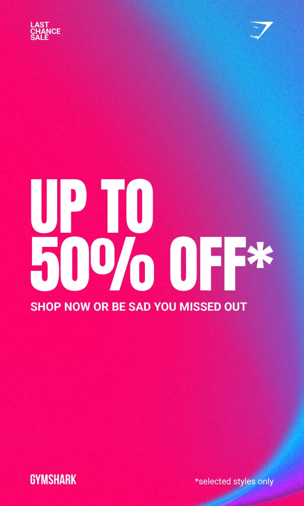 Discounts will be up to 50% off selected products in-store and online at gymshark.com during The Gymshark Last Chance Sale. Please note that stock, discounts, and inventory will vary across stores.